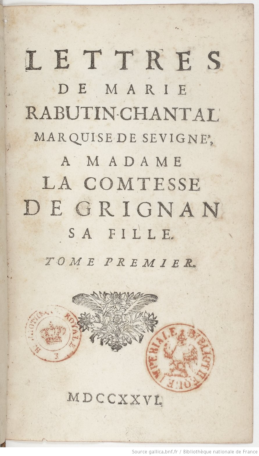 Page de garde de l'édition subreptice de Rouen. Source : https://gallica.bnf.fr/ark:/12148/btv1b86146056/f7.image